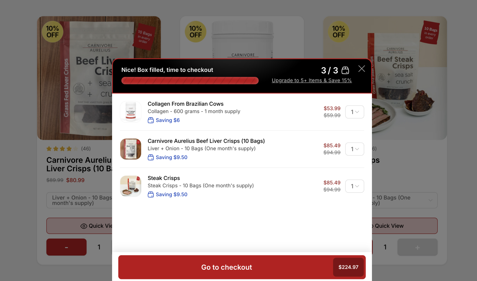 Customizable box sizes (2, 3, 5+ items) encourage larger purchases