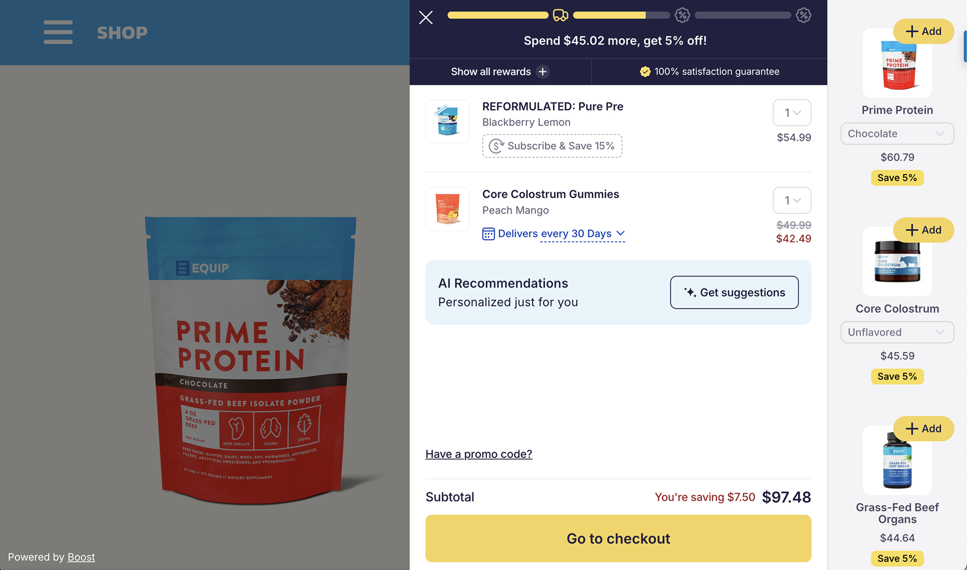 Boost has been a game changer for our cart! We used many cart apps in the past. None have the customizability or performance compared to Boost. It's super easy to set up. Highly recommend!